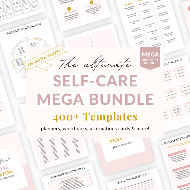 Introducing the Mega Self-Care Canva template Bundle, meticulously designed to elevate your everyday life and include everything you need to master self-care! This comprehensive package isn't just a set of planners; it's a roadmap to your best self and optimal self-care and self-love.